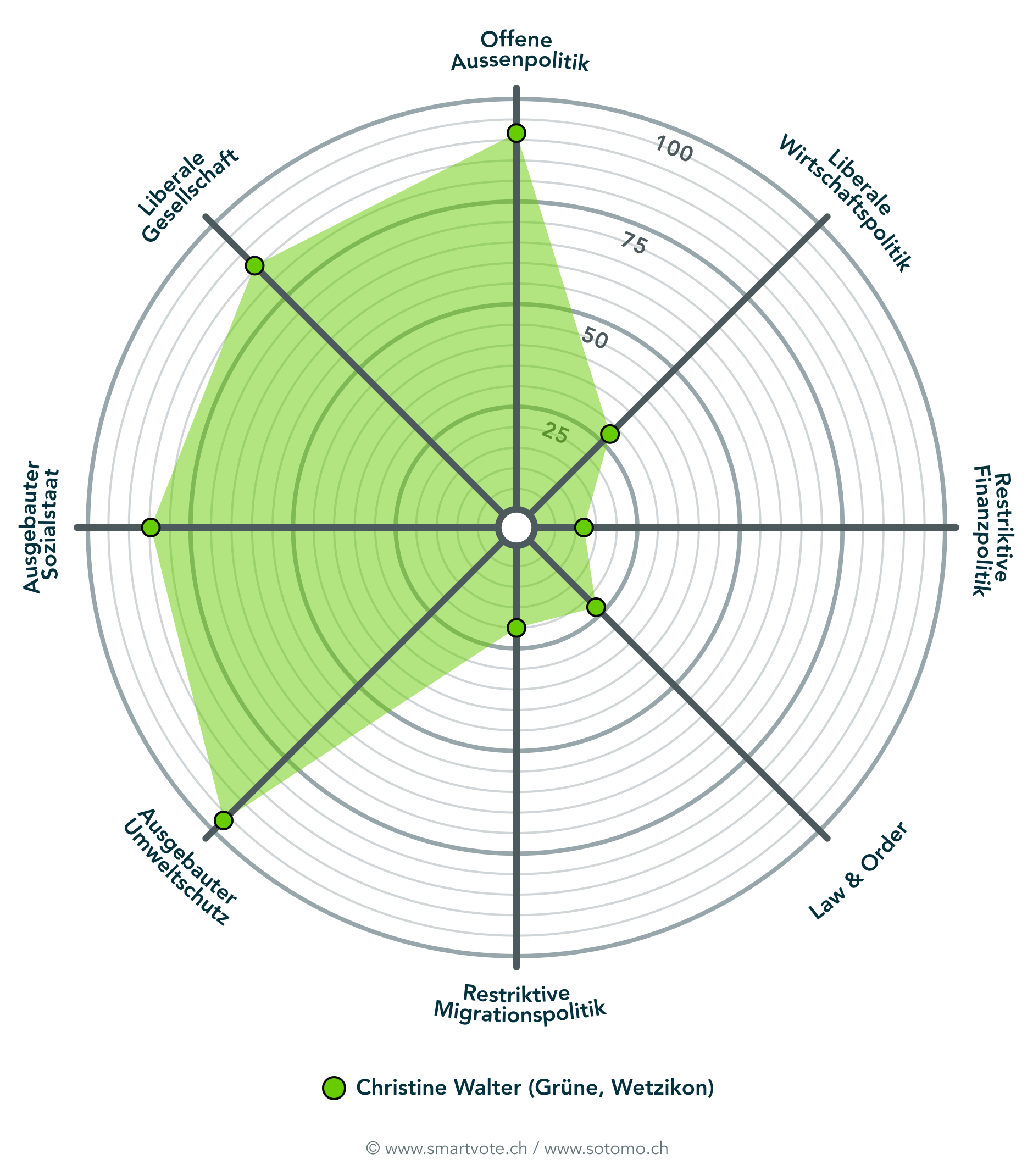 Mein "Smartspider 2026" zeigt deutlich, dass die Grünen mein richtiges politisches Zuhause sind. – Neben meinem Engagement für ein ökologischeres Wetzikon sollen Kinder mit einem gefüllten Bildungsrucksack ins erwachsene Leben starten können. Dafür setze ich mich ebenso ein, wie für eine offene Gesellschaft.